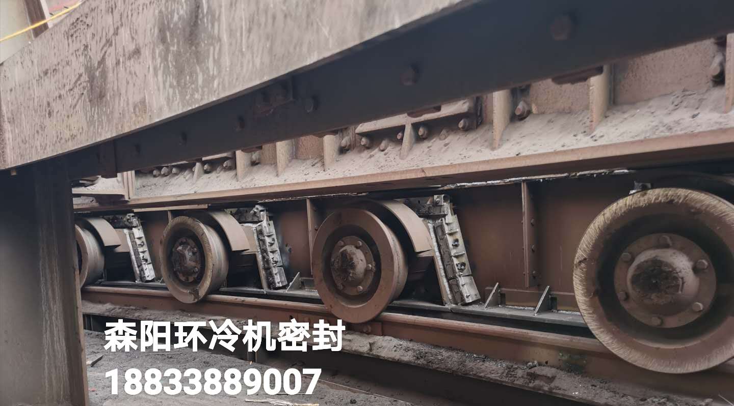 密封采用彈性可自調(diào)結(jié)構(gòu)??筛鶕?jù)環(huán)冷臺(tái)車跑偏情況進(jìn)行彈性調(diào)整。對(duì)環(huán)冷機(jī)底梁、臺(tái)車輪、三角梁、煙罩等位置進(jìn)行有效密封。煙罩部分采用水槽式密封結(jié)構(gòu),保證煙罩圈梁始終在水槽密封內(nèi)運(yùn)行。密封后有效改善現(xiàn)場(chǎng)噴料、漏風(fēng)。改善現(xiàn)場(chǎng)環(huán)境,提高煙氣溫度,從而增加了發(fā)電量。